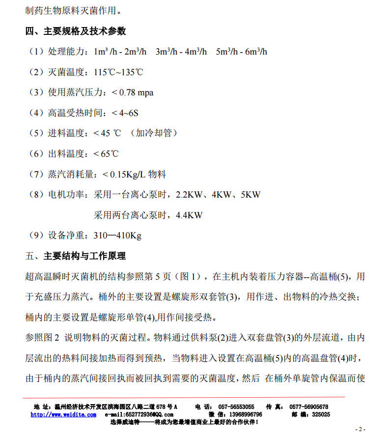 滅菌機(jī)與物料接觸部分,都采用不銹鋼制造,雙套盤(pán)管用專(zhuān)用機(jī)床加工,同心度高。內(nèi)表面光潔,從而使液料通過(guò)雙套盤(pán)管時(shí)形成均勻的液層,加熱十分均勻。