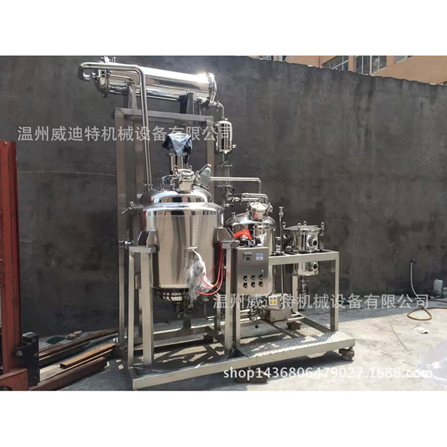 該設(shè)備的整個(gè)提取過(guò)程均采用封閉式循環(huán)系統(tǒng)完成??梢栽诖髿鈮夯虼髿鈮合绿崛?。無(wú)論是金銀花提取,酒精提取,油提取還是其他目的,給定過(guò)程中的所有金銀花都必須根據(jù)藥物的性能要求自行切割。提取罐是為金銀花的沸騰提取過(guò)程設(shè)計(jì)的多功能設(shè)備,可以提取酒精,回收酒精并分離出揮發(fā)油。除提取罐的主要設(shè)備外,它還配備了泡沫阱,冷卻器和油水分離器。這些儀器由不銹鋼制成,與藥物接觸,壓力容器檢查部門對(duì)中間層的加熱進(jìn)行了嚴(yán)格測(cè)試。在萃取過(guò)程中,它由冷凝器,油水分離器等組成,并具有完全封閉的循環(huán)系統(tǒng),同時(shí)還從廢物中回收有機(jī)溶劑。